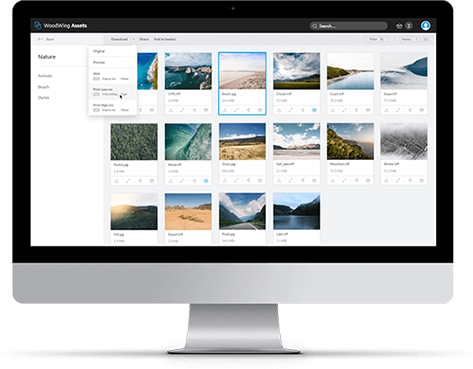 Compartilhe seus materiais finais com escritórios, lojas ou parceiros locais usando o portal WoodWing Assets Brand e permita que eles baixem o arquivo de que precisam, sob demanda.